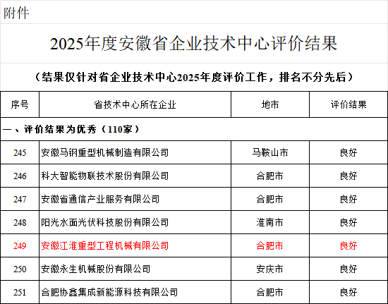 近日,安徽省工业和信息化厅发布《2025年度安徽省企业技术中心评价结果公示》,我公司省级企业技术中心顺利通过复评,并获评“良好”等级。该评价结果充分体现了公司在技术创新体系建设和研发实效方面的扎实成果,是对我公司持续强化科技自主创新能力的权威认可。