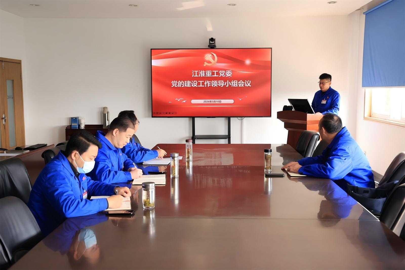 3月10日,江淮重工党委召开党的建设工作领导小组会议,认真学习领会习近平总书记关于树立和践行正确政绩观的重要论述,传达学习中央党的建设工作领导小组、省委、省国资委党委、集团公司党的建设工作领导小组关于开展树立和践行正确政绩观学习教育有关会议精神和通知要求,审议江淮重工党委学习教育《实施方案》,部署安排学习教育工作。股份公司党委委员、副总经理、江淮重工党委书记、董事长陈先友出席会议并讲话。