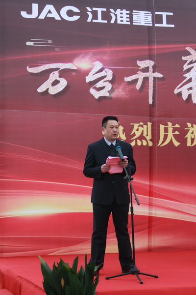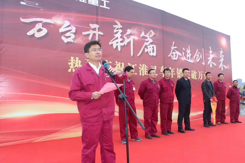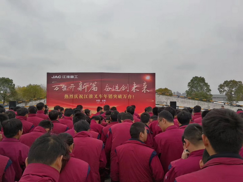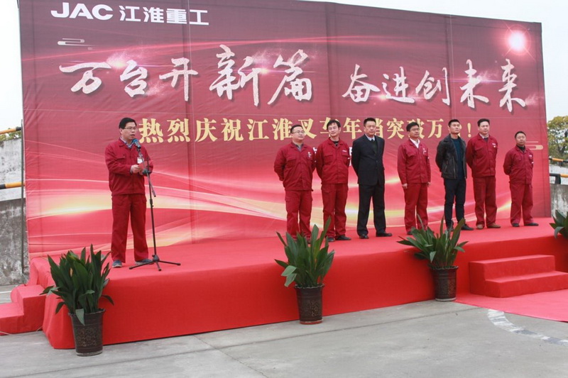 2017年11月30日,以“万台开新篇 奋进创未来”为主题的江淮重工年销突破万台庆典仪式在合肥举办,江淮重工经营领导团队、公司全体员工参加。部分经销商代表和客户代表应邀出席庆典仪式,庆典由公司副总经理、党委副书记谢振兴主持。
