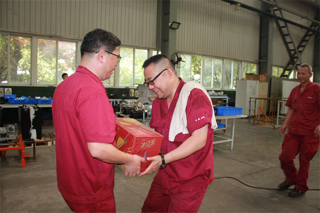 漫漫夏日,酷暑难当。营销一线人员一如既往坚守岗位,抢抓订单,对接业务;智能事业部出差驻点人员克服高温、工作和生活的不便利,在施工现场紧张有序的跟线作业;生产一线以焊工为代表的“脏苦累”工种,叉车调试工、发车打包人员室外高温作业等,处处彰显我们一线员工不畏困难不怕吃苦的精神。为此,工会作为广大员工的“娘家人”,不问员工们“飞的高不高”,只问“干的累不累”,用实际行动慰问一线员工,将关心关爱落到实处。