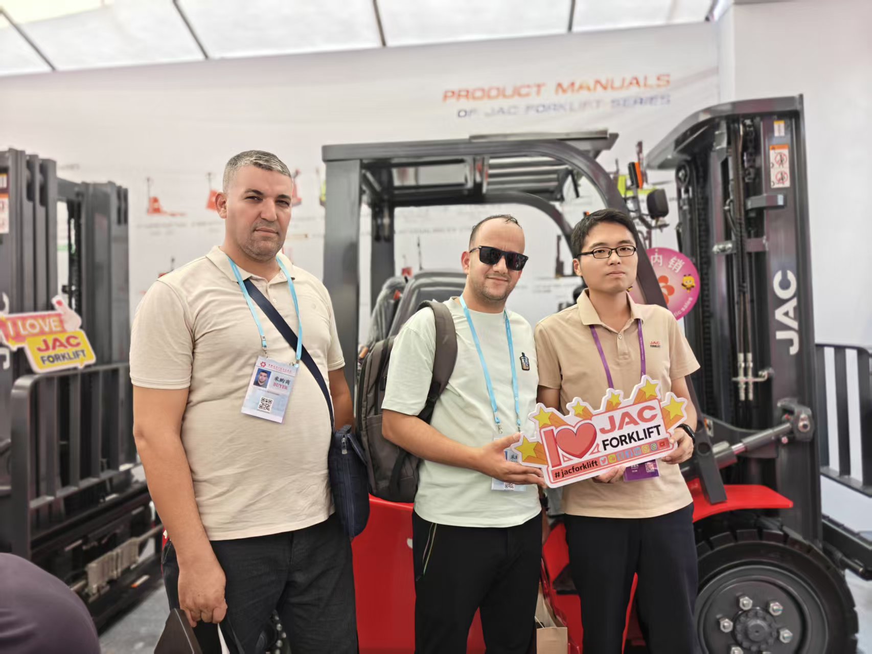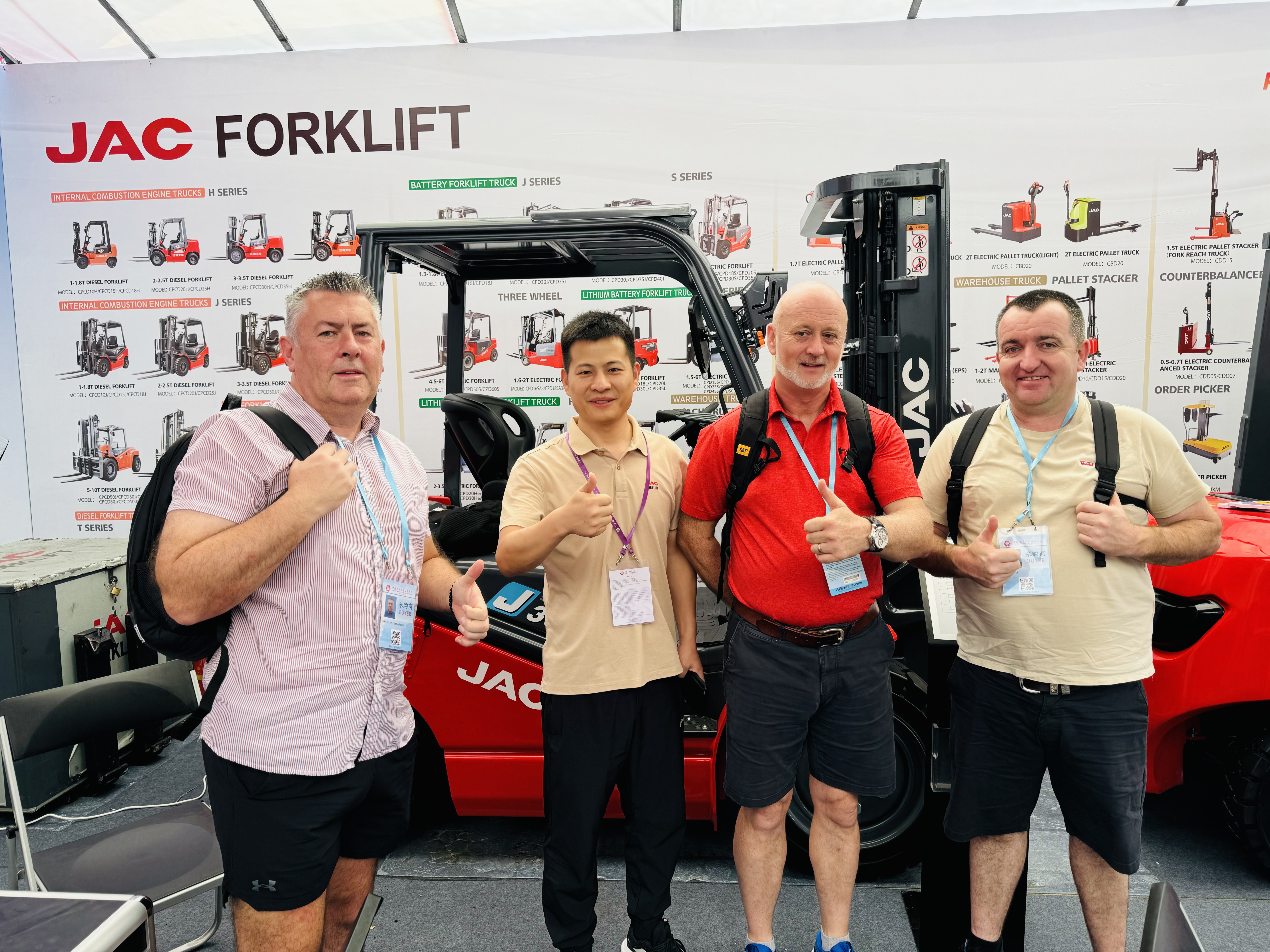 At this globally influential economic and trade event, many national brands have showcased "hard-core" products. JAC Heavy Industries has once again made its appearance with a variety of new and upgraded products, covering multiple product series such as internal combustion, electric and intelligent warehousing. In particular, the CPD20L electric forklift equipped with the company's independently developed intelligent control system has become the focus of the exhibition with its efficient and energy-saving operating performance and precise and stable control performance, attracting a large number of overseas merchants to stop for exchanges and experiences, and has received many praises.